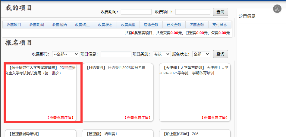 报名之后进行缴费,缴费成功后保留截图(需包含缴费人员信息和缴费信息),复试资格审查提交已完成缴费截图(重新进入菜单-报名系统-报名项目-报名信息-显示截图)。